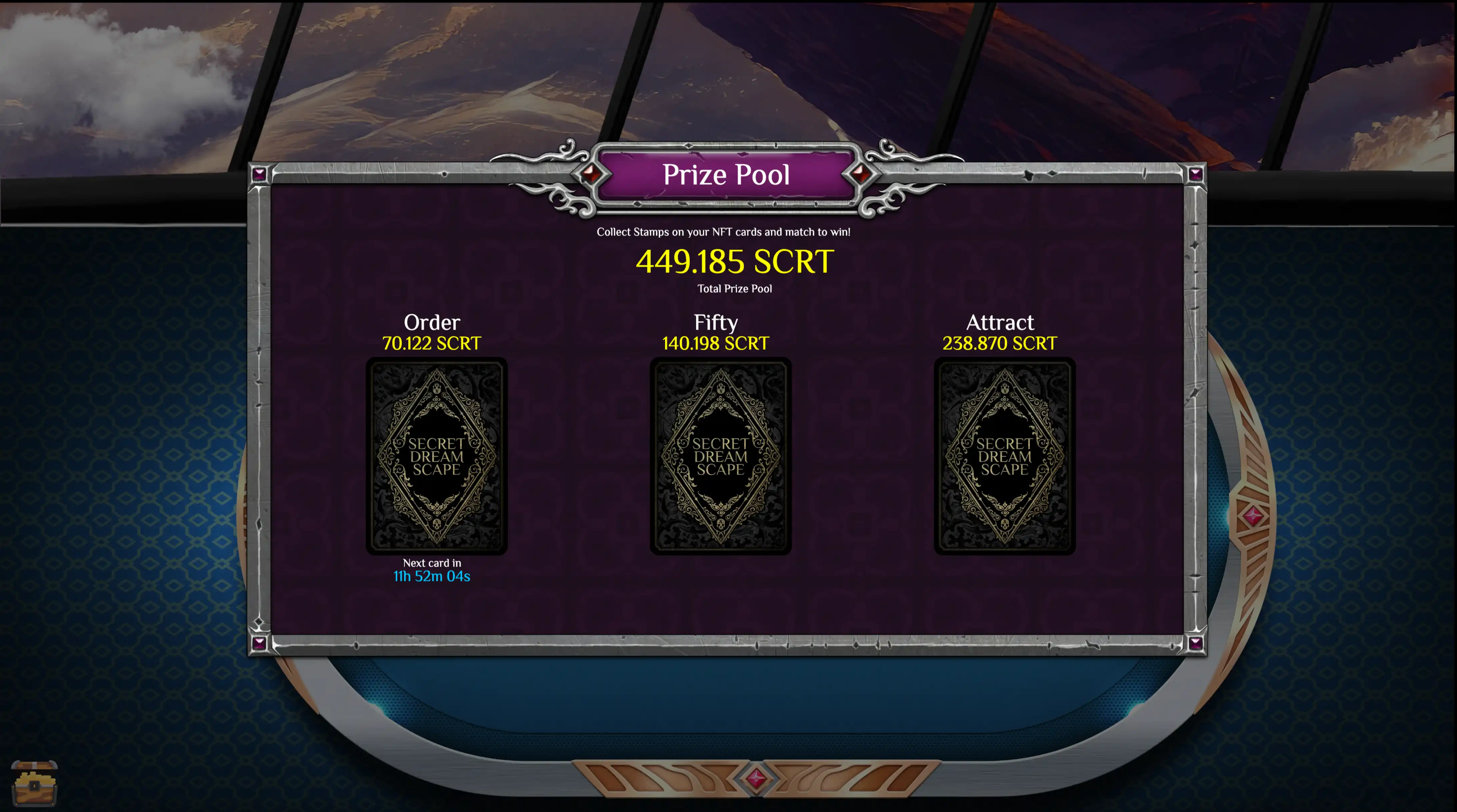 Each Secret DreamScape NFT card gets stamped with words as you play hands.The more words your cards get, the more likely they are to win a prize pool!